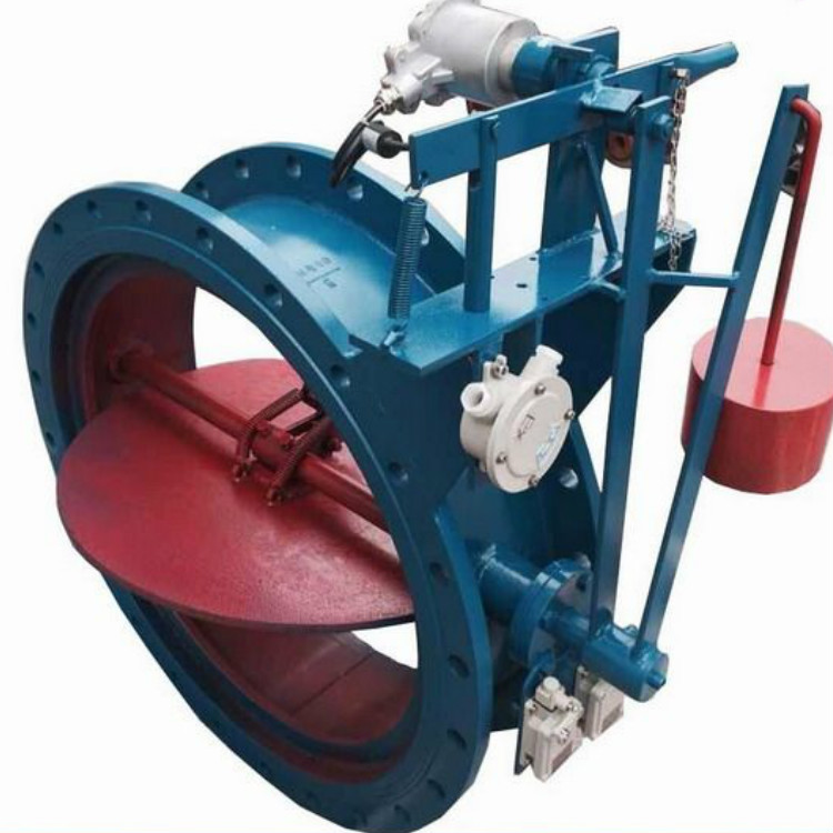 DMF-0.1型電磁式煤氣快速切斷閥工作原理電控式煤氣快速切斷閥由密封性能良好的蝶閥電磁機(jī)構(gòu)、鎖定機(jī)構(gòu)、重錘及重錘臂等部件組成;閥門開啟時(shí),重錘臂處于豎立位置,電源接通,重錘臂被鎖定機(jī)構(gòu)鎖定,管道正常輸氣。當(dāng)管道內(nèi)介質(zhì)壓力底于規(guī)定值或系統(tǒng)出現(xiàn)異常需立即切斷介質(zhì)時(shí),可通過相應(yīng)的控制回路使電磁機(jī)構(gòu)斷電,解除鎖定;重錘臂及閥板在重力的作用下,依順時(shí)針方向落下,閥門關(guān)閉。當(dāng)需要恢復(fù)供氣時(shí),將重錘臂連同重錘按逆時(shí)針方向轉(zhuǎn)至堅(jiān)直位置,鎖定機(jī)構(gòu)復(fù)位,此時(shí)行程開關(guān)的接點(diǎn)閉合,電磁機(jī)構(gòu)得電,重錘臂被鎖定。閥門又呈開啟狀態(tài)。